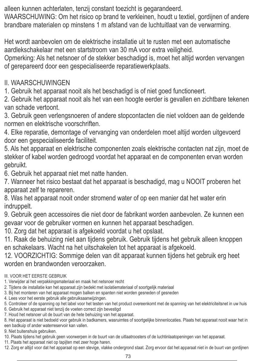 brandbare materialen op minstens 1 m afstand van de luchtuitlaat van de verwarming.