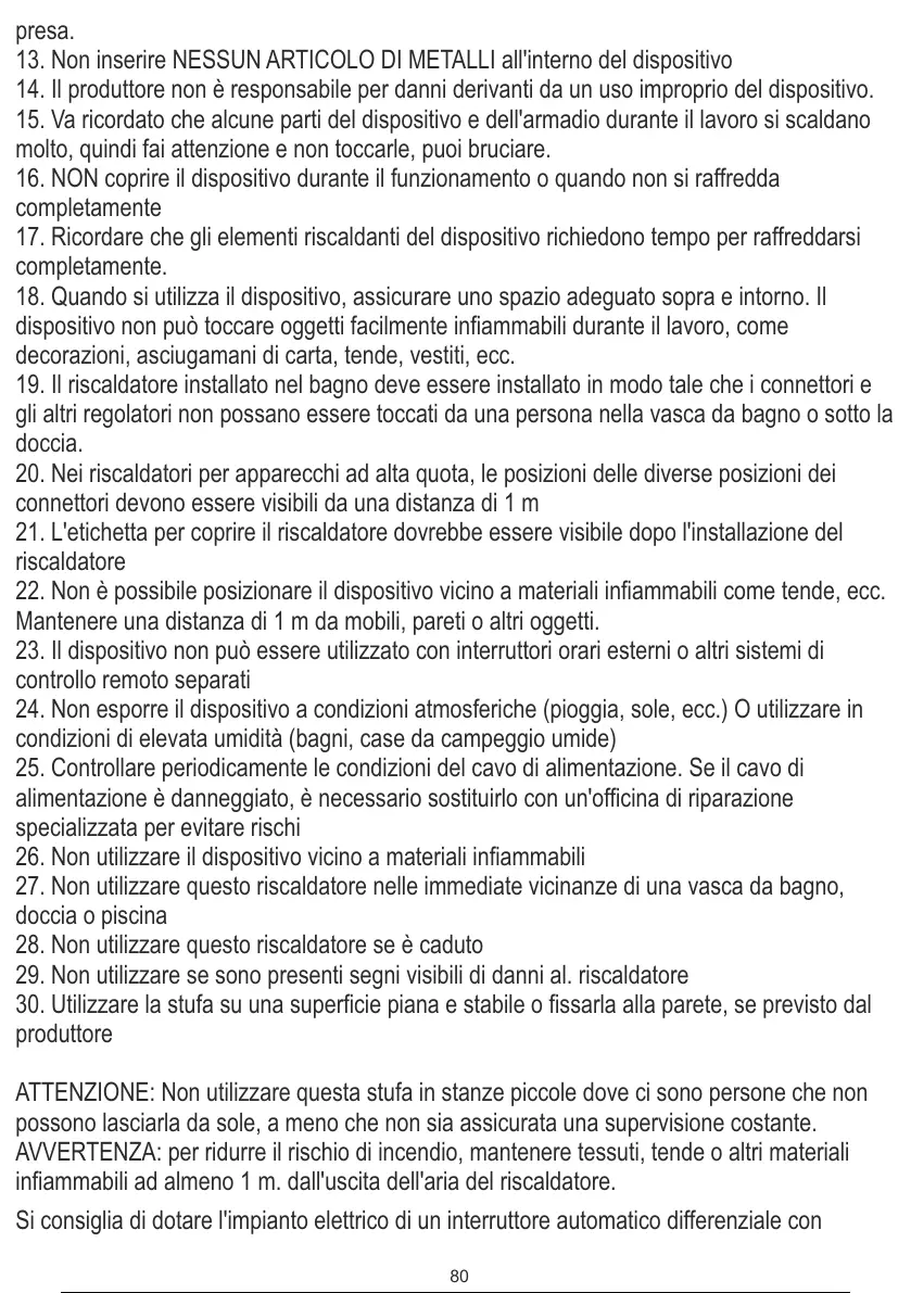29. Non utilizzare se sono presenti segni visibili di danni al. riscaldatore