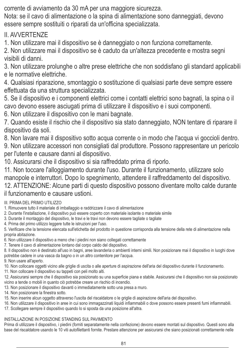 15. Non inserire alcun oggetto attraverso l'uscita del riscaldatore o le griglie di aspirazione dell'aria del dispositivo.