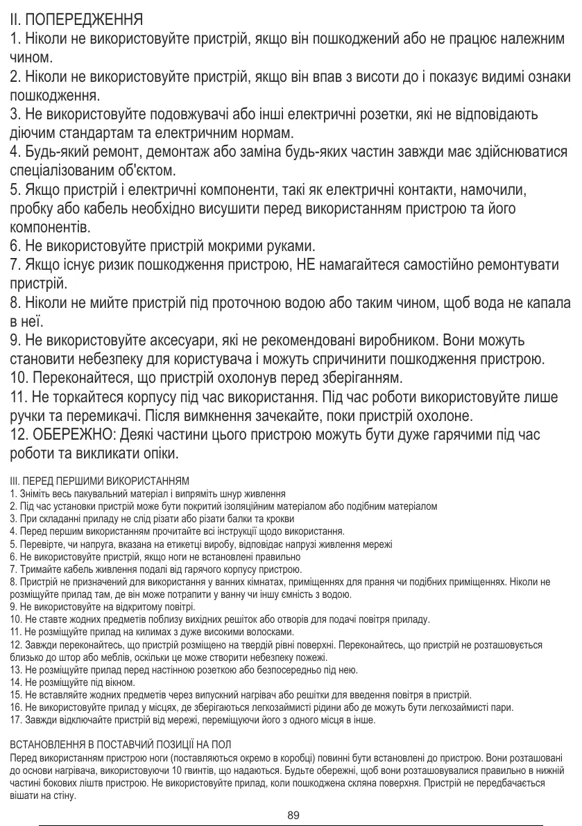 6. Не використовуйте пристрій, якщо ноги не встановлені правильно