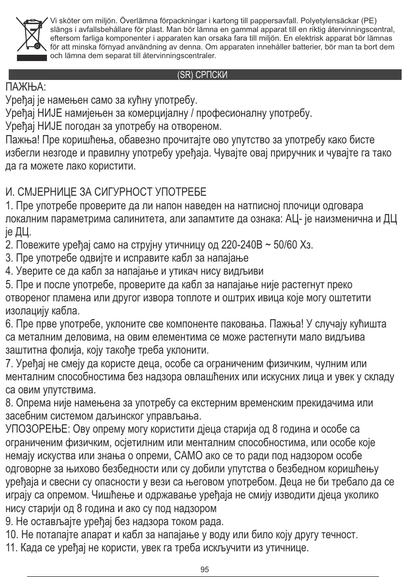 7. Уређај не смеју да користе деца, особе са ограниченим физичким, чулним или