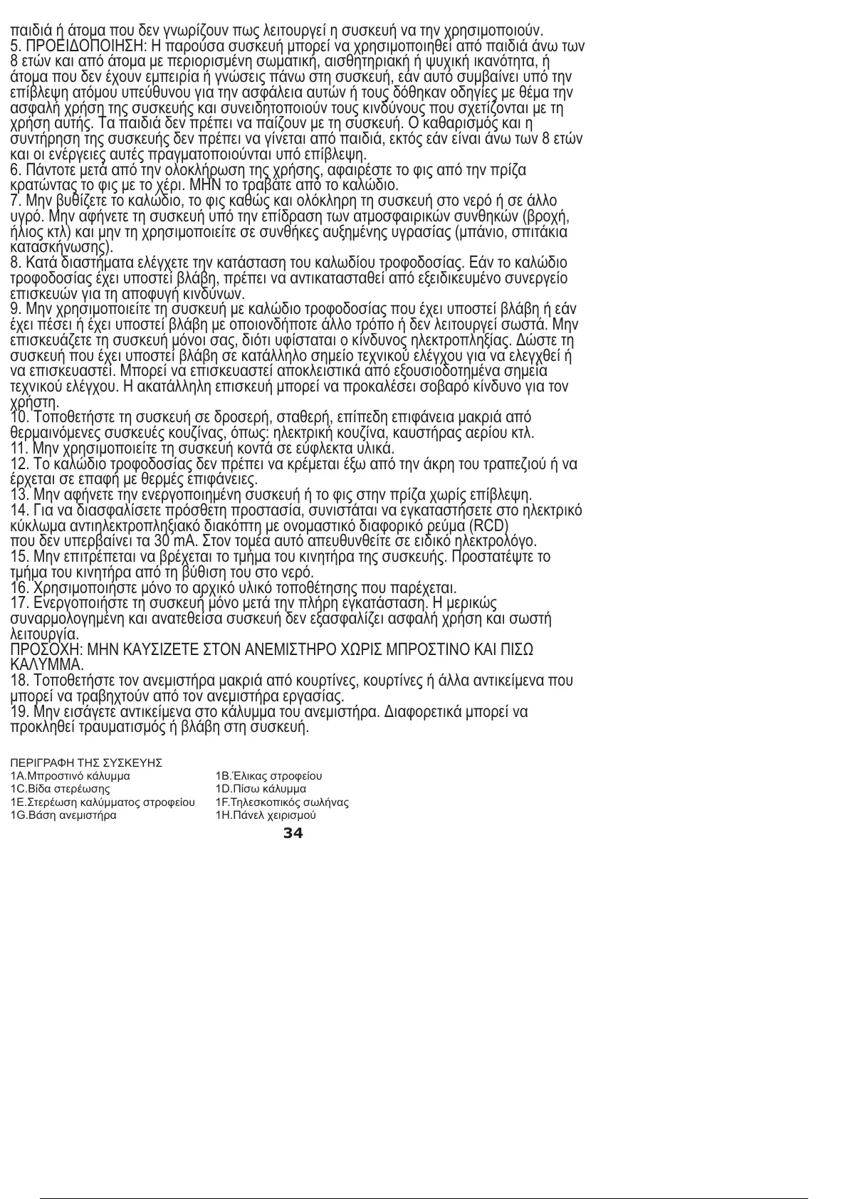 1G.Βάση ανεμιστήρα 1H.Πάνελ χειρισμού