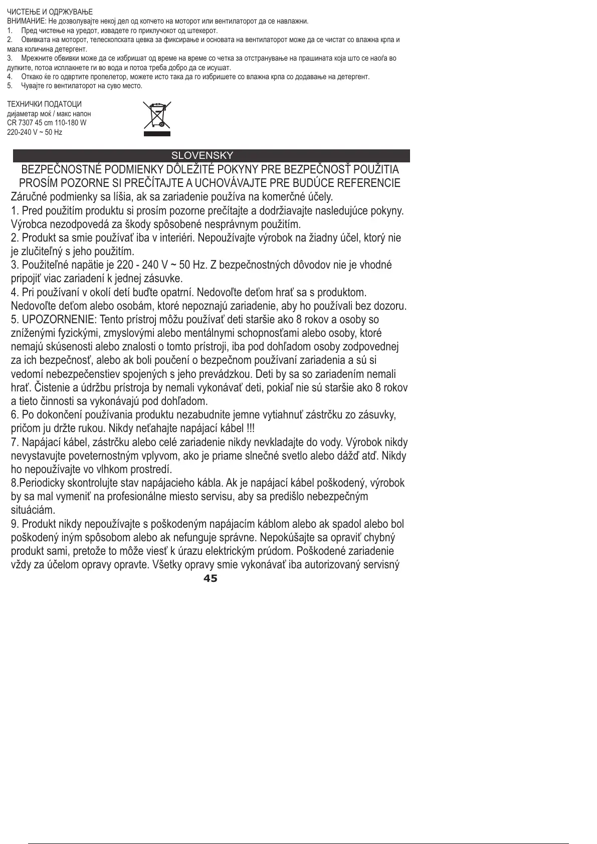 5. UPOZORNENIE: Tento prístroj môžu používať deti staršie ako 8 rokov a osoby so