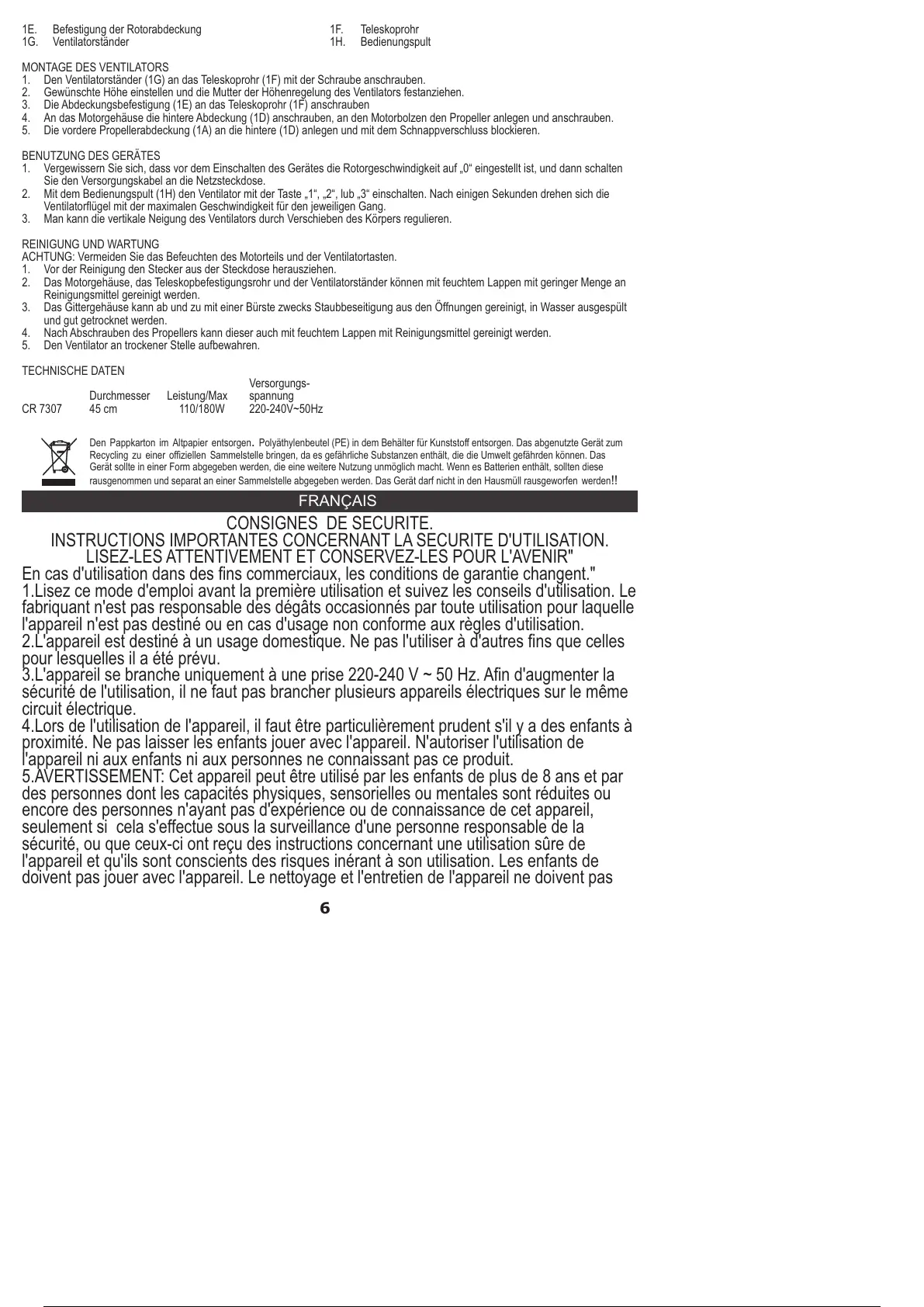 CR 7307 45 cm 110/180W 220-240V~50Hz
