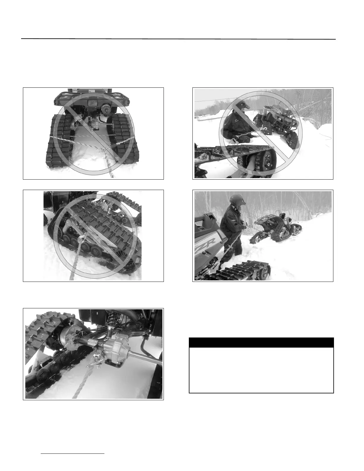 snow, do not secure the towing cable on the Track