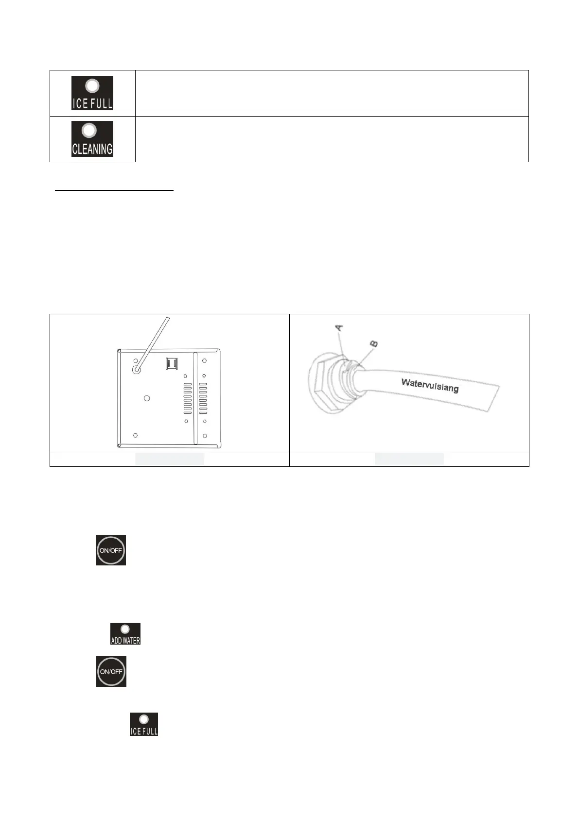 Opmerking: Tijdens de eerste drie cycli zijn er misschien kleine stukjes ijs die onregelmatig van
