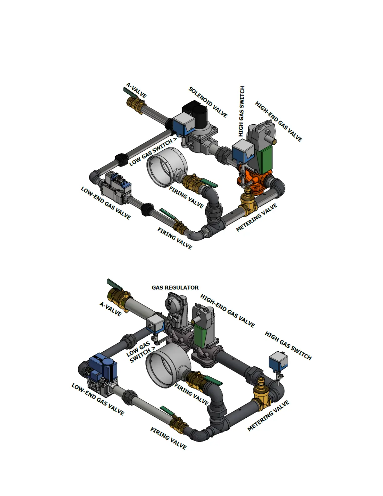 NOTE: Illustrations below do not reflect actual gas train assemblies on these models.