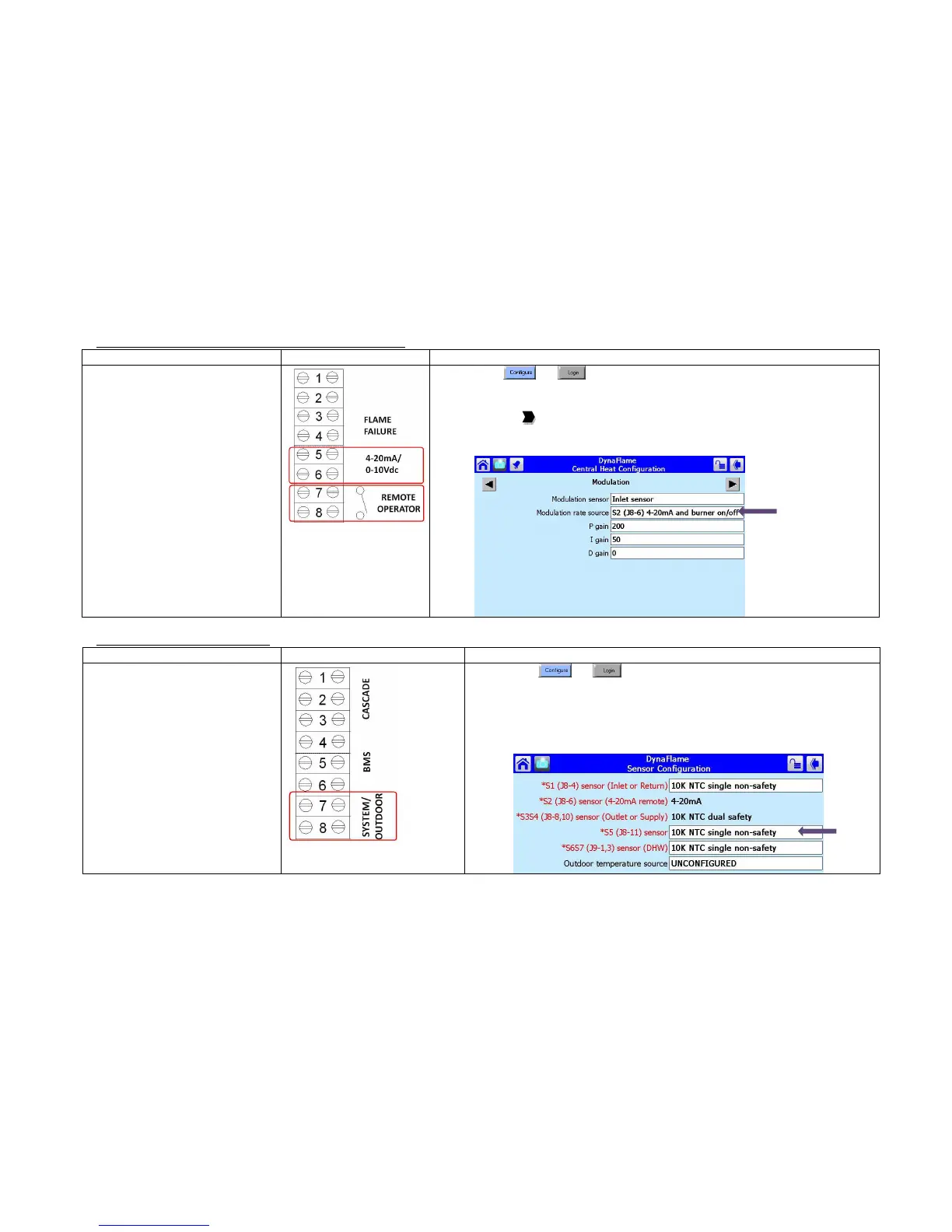 5) Select Modulation rate source = S2 (J8-6) 4-20mA and burner on/off