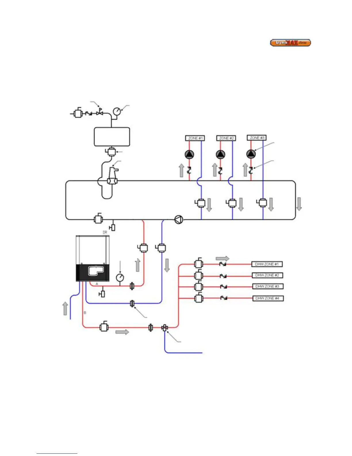 Figure 32: Single Combination Boiler Zoned Piping Arrangement