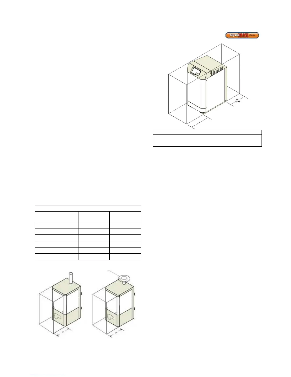 Table 1: Clearance from Combustibles