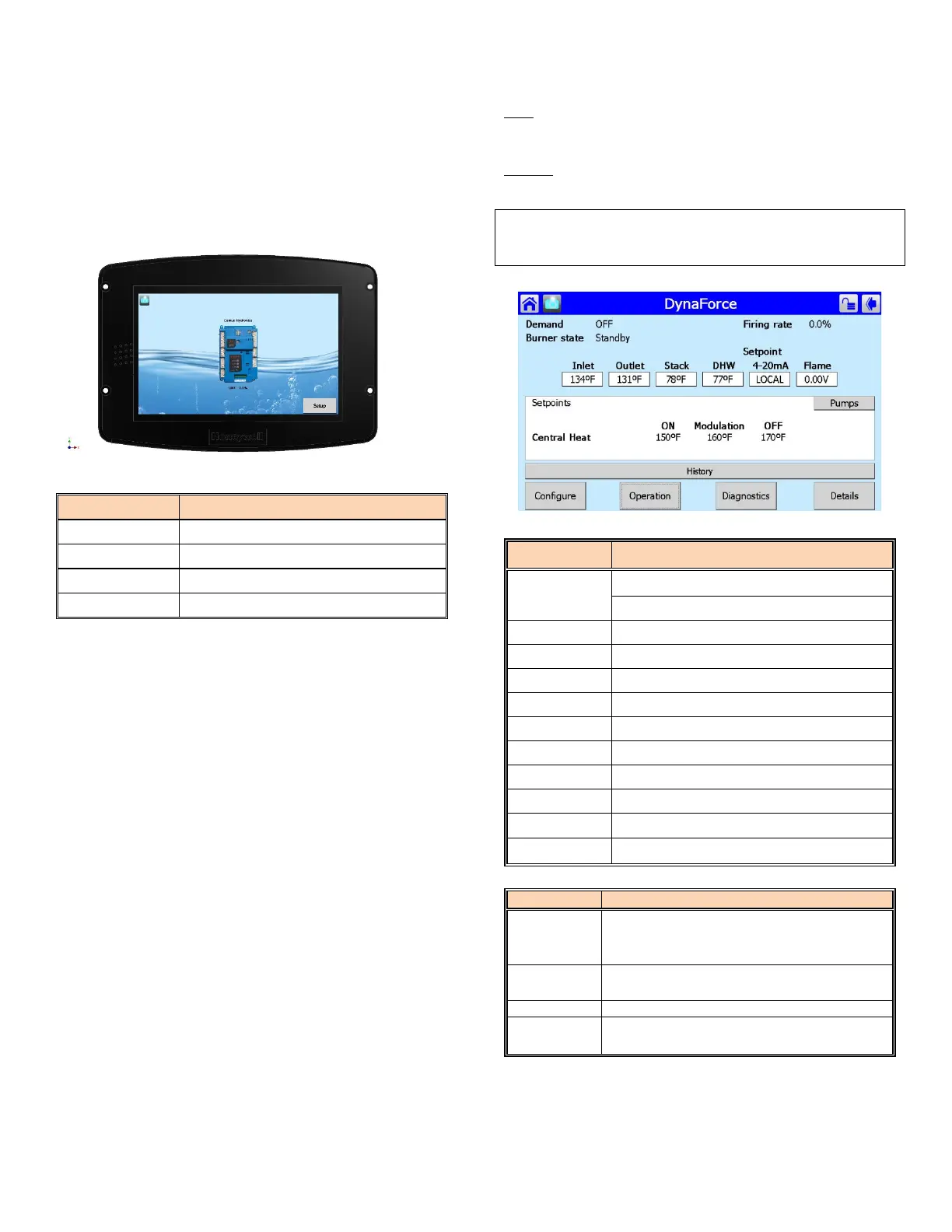 Details of boiler operation (Set point, Firing