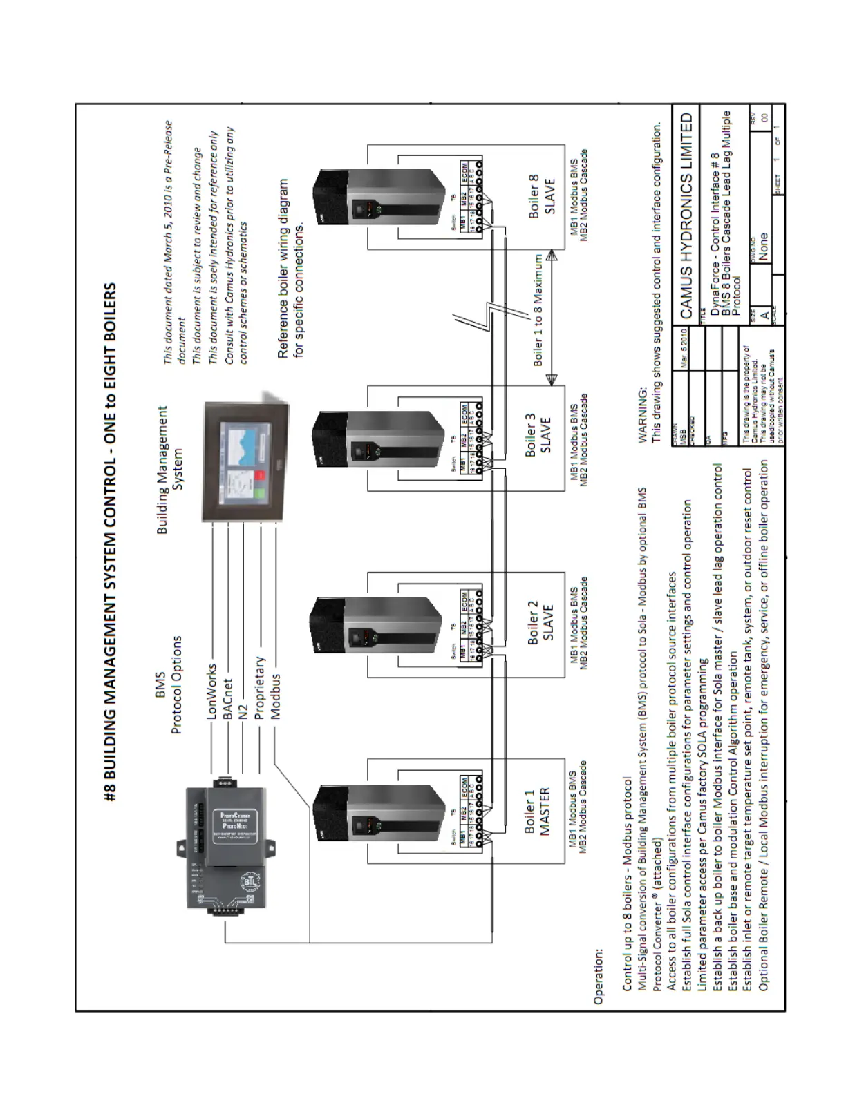 Camus Hydronics Dynaforce DRN4000 - #8 BUILDING MANAGEMENT SYSTEM CONTROL - ONE to EIGHT BOILERS; WARNING: This drawing shows suggested control and interface configuration.