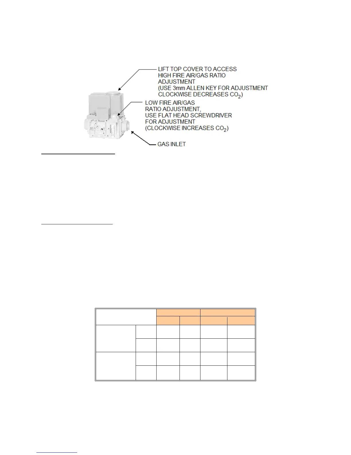 Once the appliance is at maximum fan speed locate the input adjustment screw on the top side of the gas