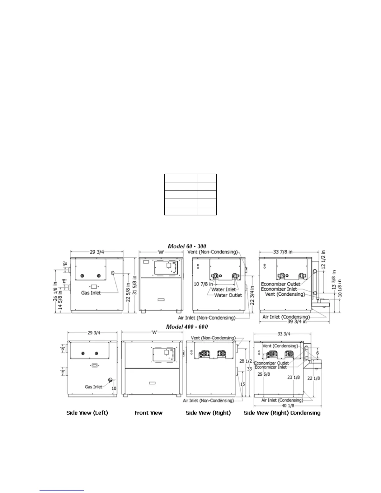 For boiler’s dimensions see Figure 1 and Table 2