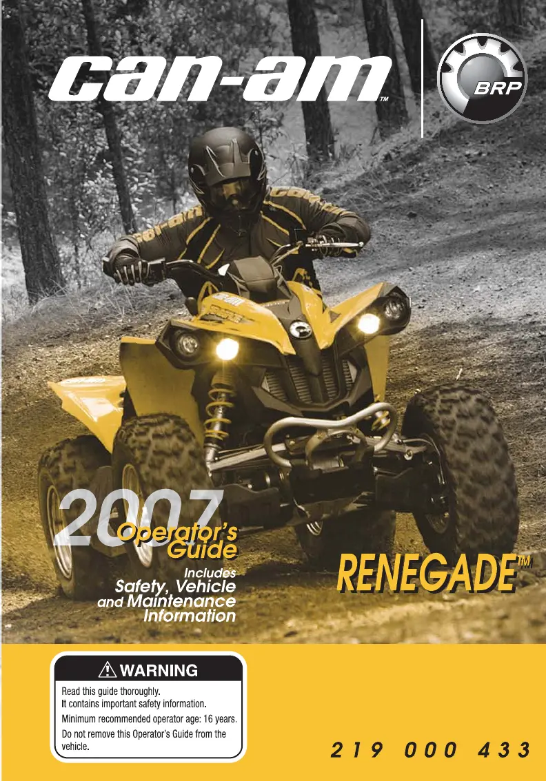If your Can-Am Offroad Vehicle's engine doesn't turn, here's what to check: * Ensure the ignition switch is in the ON position. * Verify the engine stop switch is also in the ON position. * Make sure the transmission is set to PARK or NEUTRAL, or press the brake lever. * Inspect the main fuse for any burning. * Check the charging system fuse, connections, and terminals for looseness or weakness. Consider having the battery checked and ensure you're using the correct ignition key (speedometer should not display 'INVALID KEY'). If problems persist, contact an authorized Can-Am dealer.