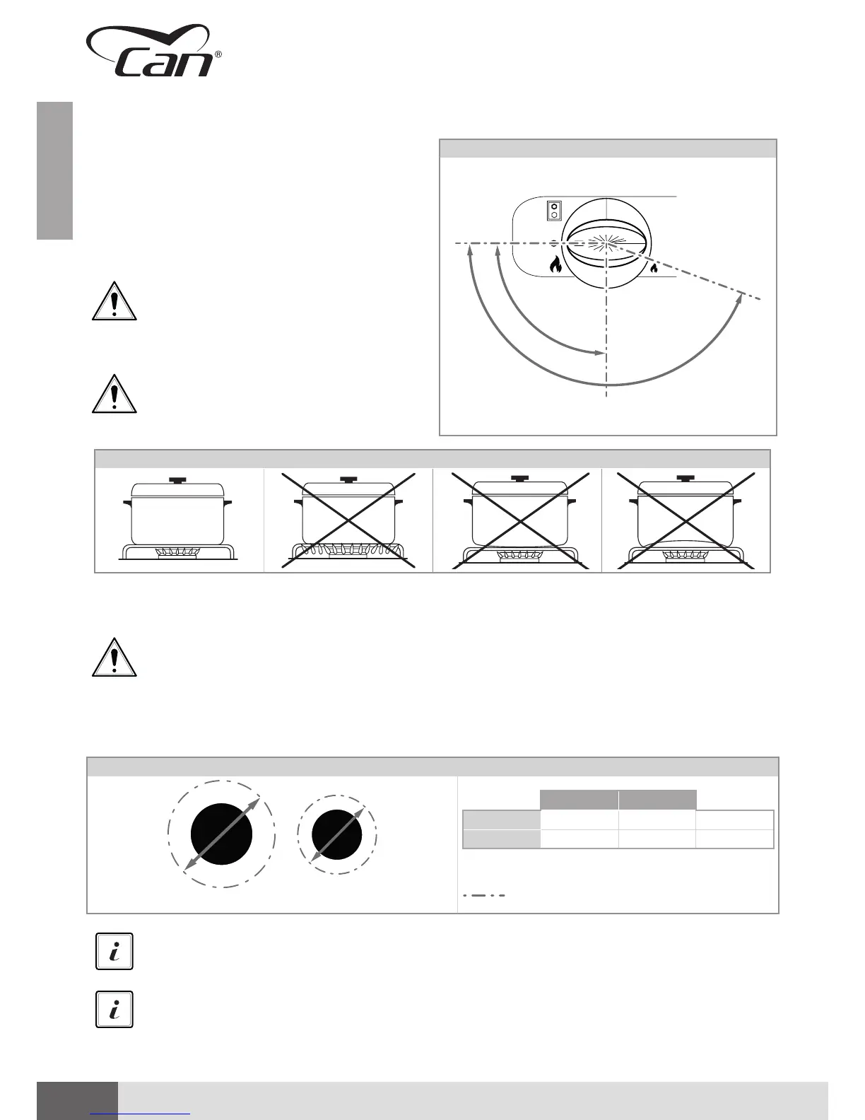 it is recommended to use vessels of a diameter suited to the type of burner chosen.