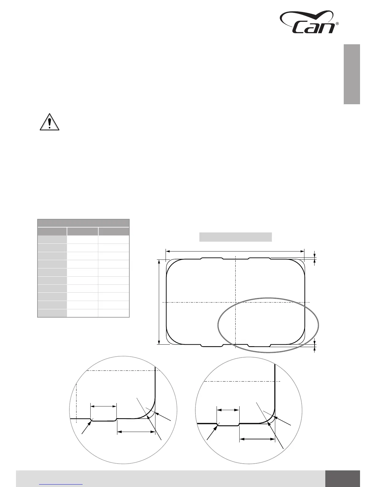 The support structure must be provided with a suitable recessed hole. See the following table for the size