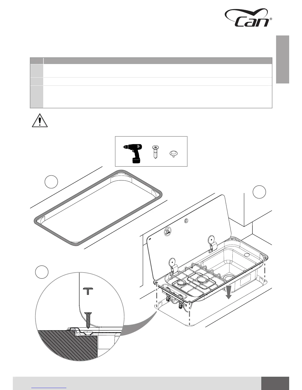 There must be an opening below the hob of at least 50 x 50 mm for passage of the gas and
