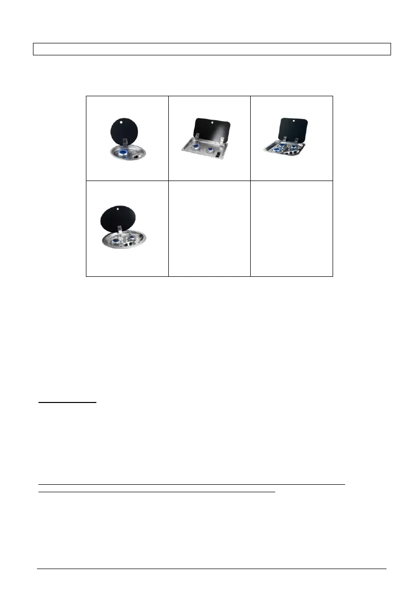The series of glass hobs comprises the models shown in the following table, which summarises the feature of the burners: