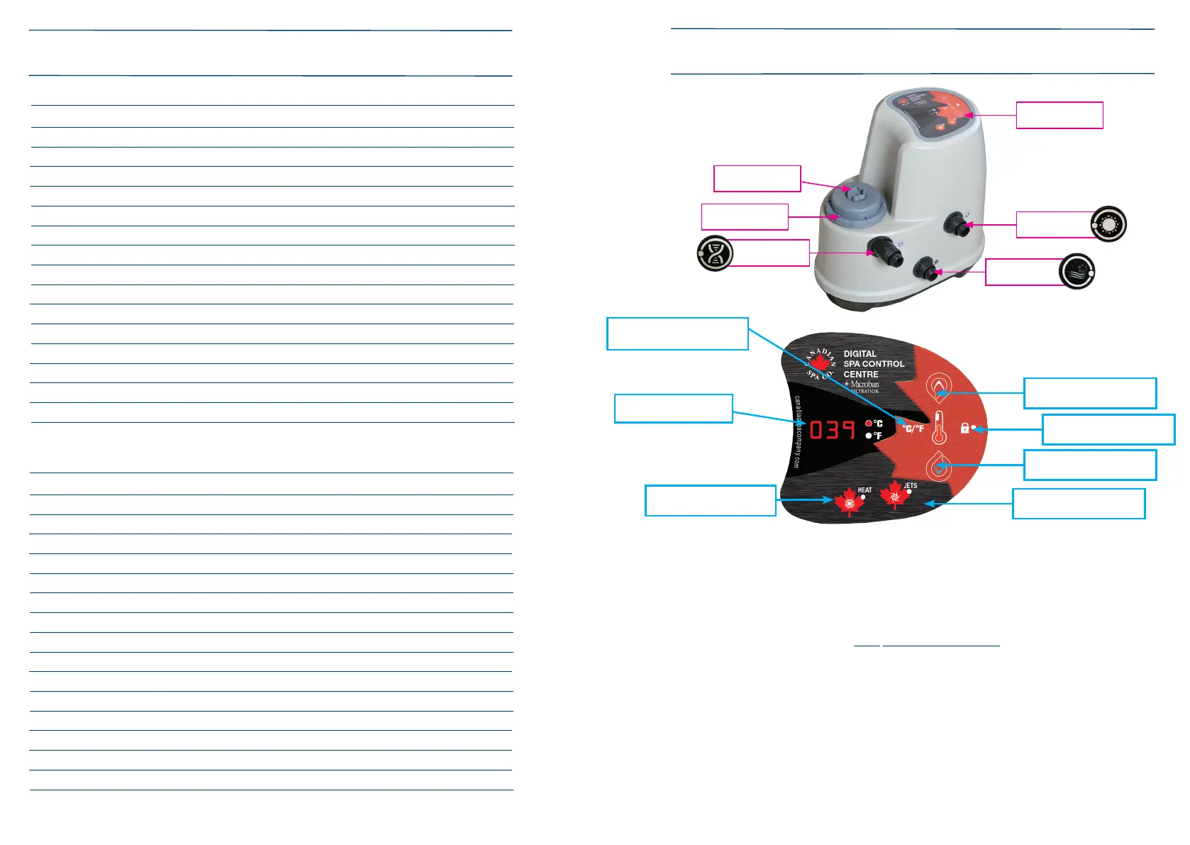 PCU and the temperature of the spa water.