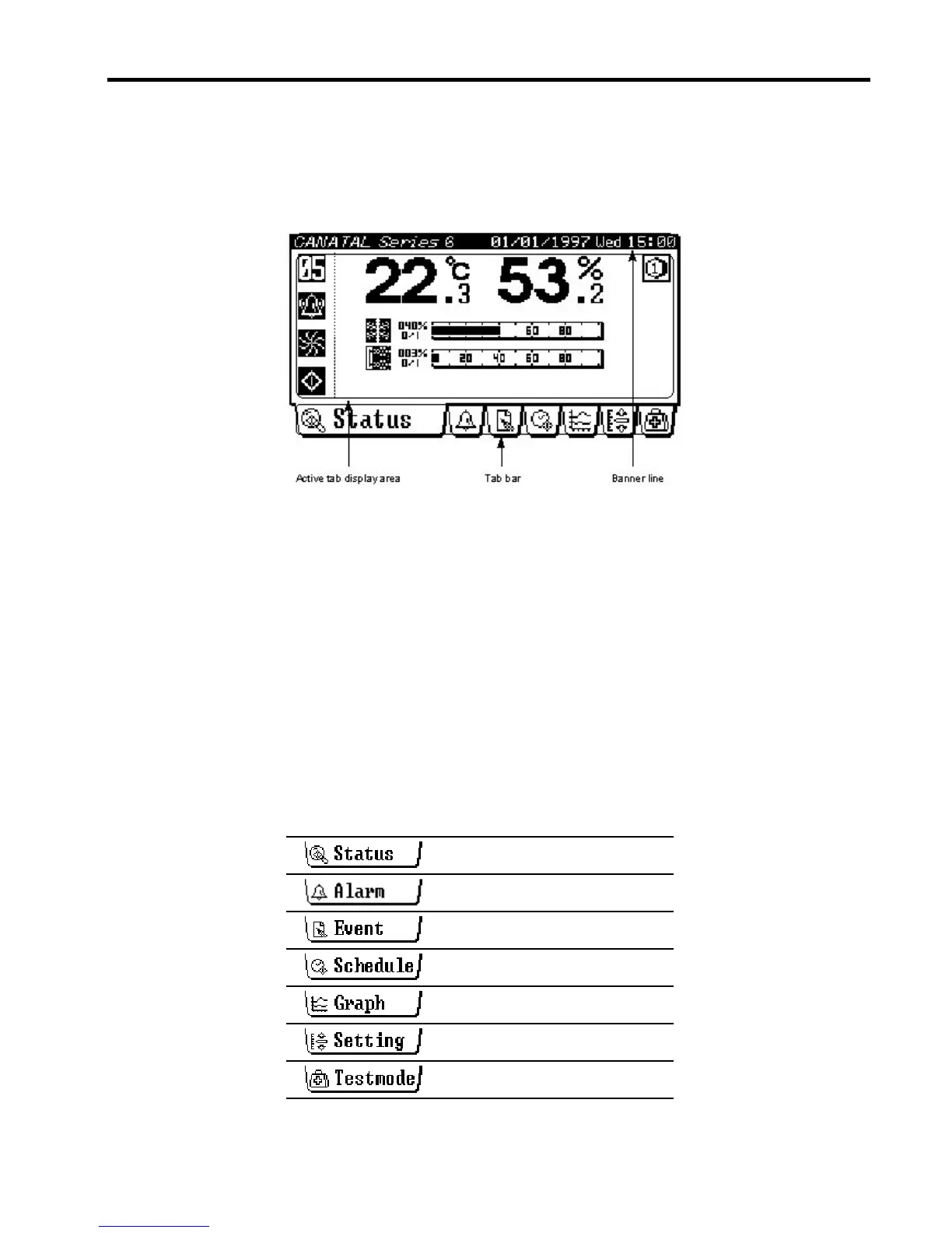 Tab bar shows the available tabs and allows user to switch tab display by pressing the