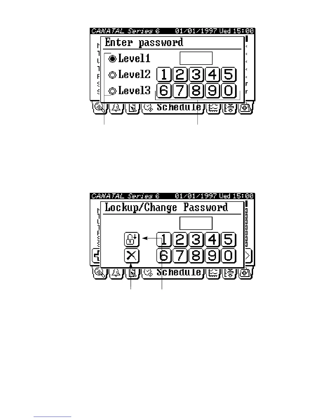 Exiting the security can be achieved by pressing the Log-out key in the log-out / change
