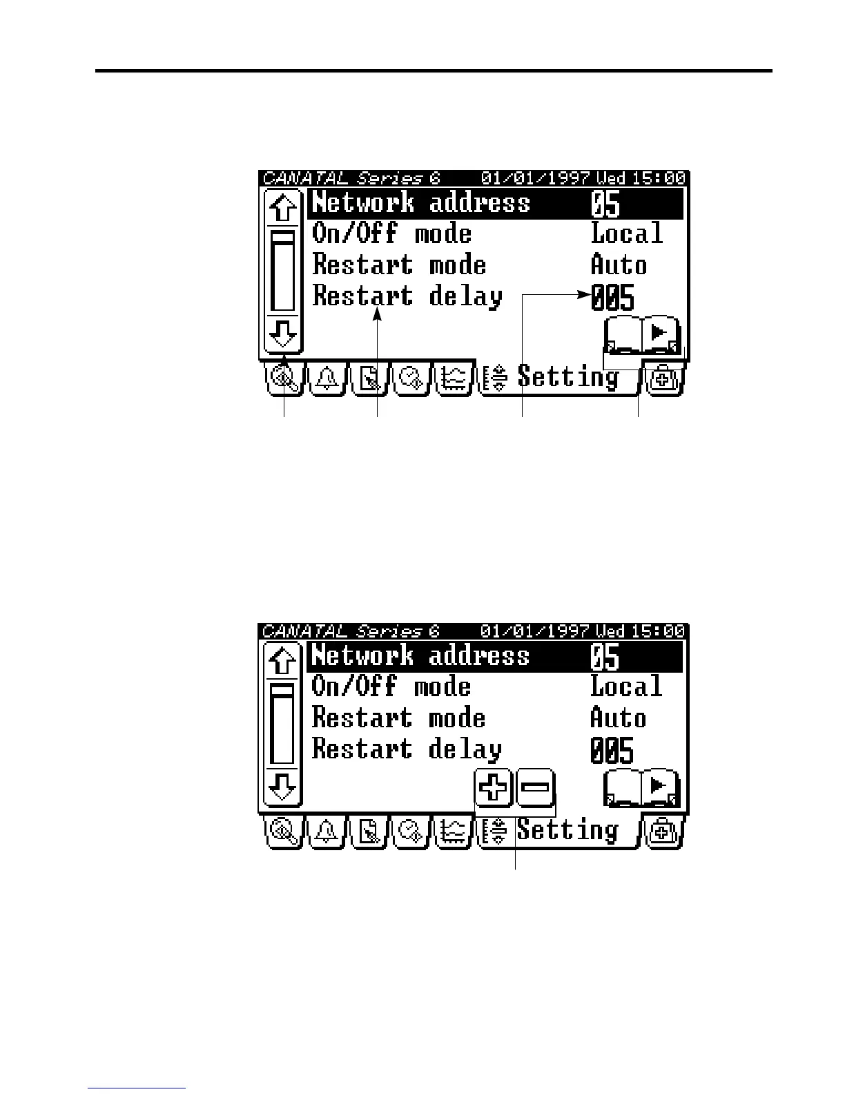 After gaining the programming right, you can change the settings by using the [Increment]