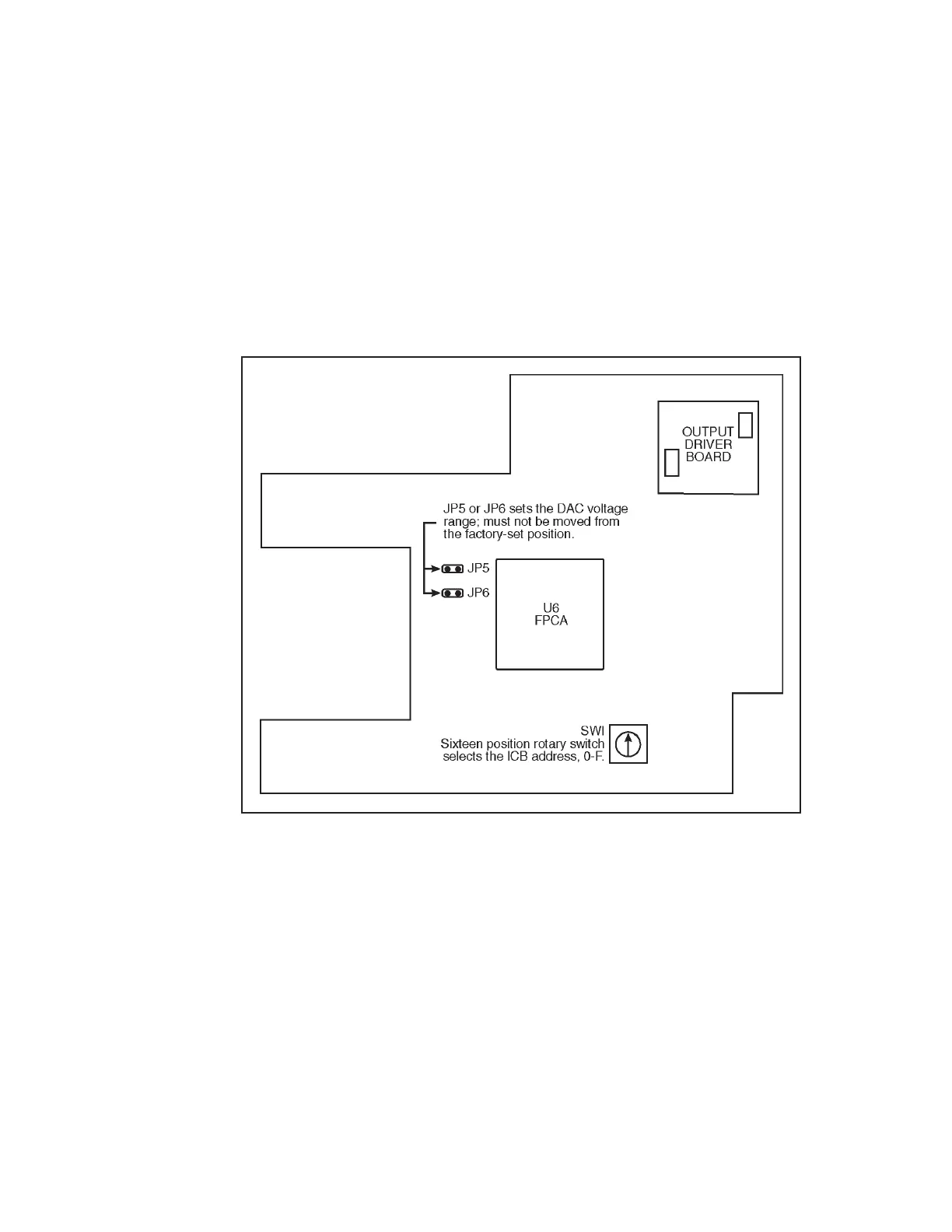 The proper DAC voltage range is set at the factory with a jumper in position JP5 or