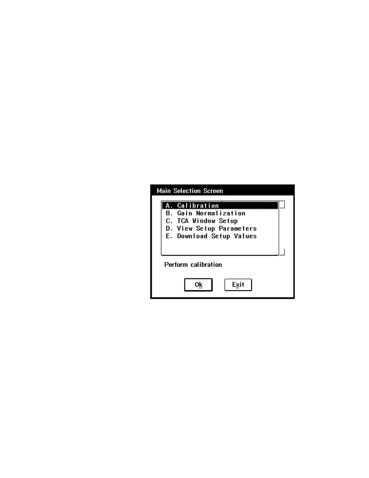 1. Select Calibration from the 2016 setup software’s Main Selection Screen, as