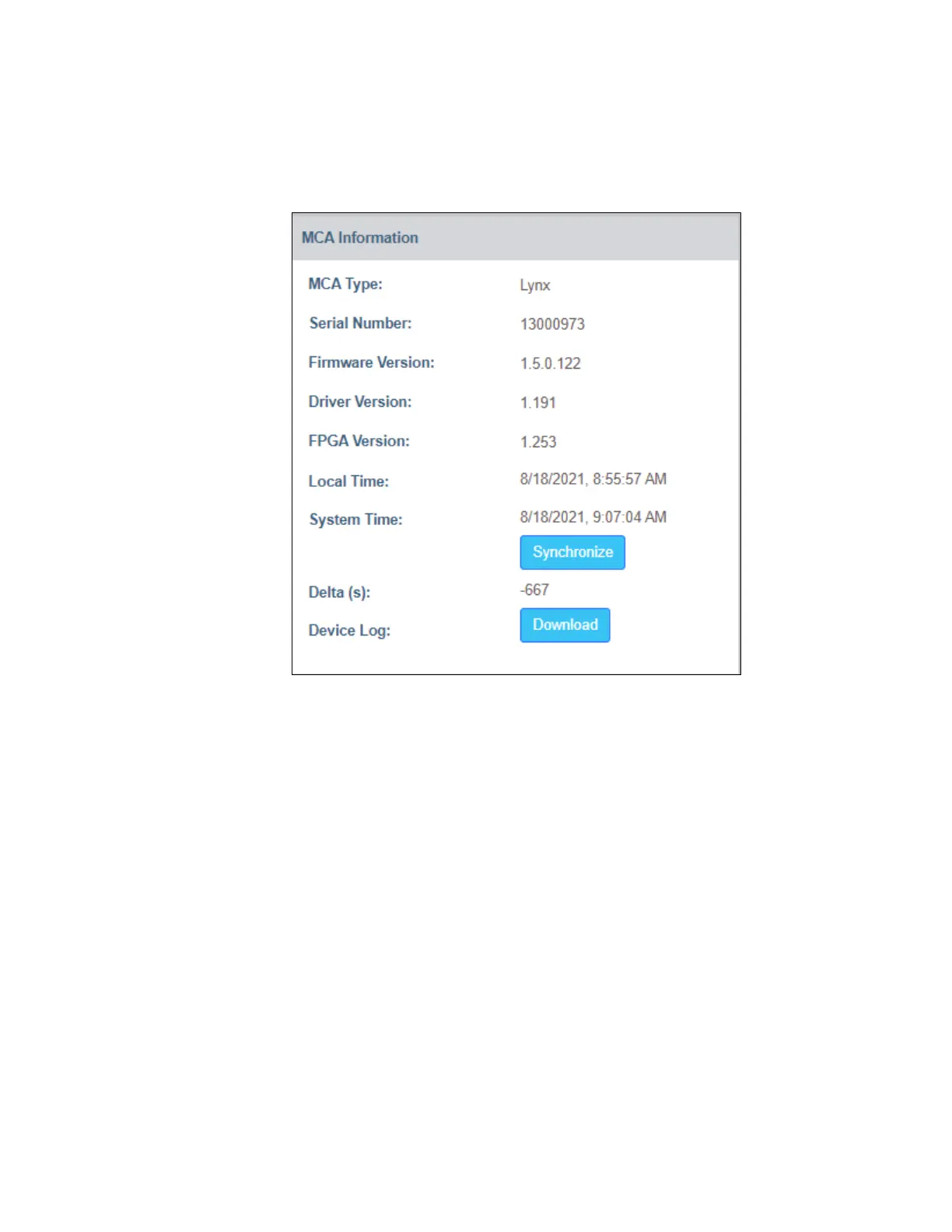• MCA Type: Read-only parameter reports the MCA Type as Lynx.