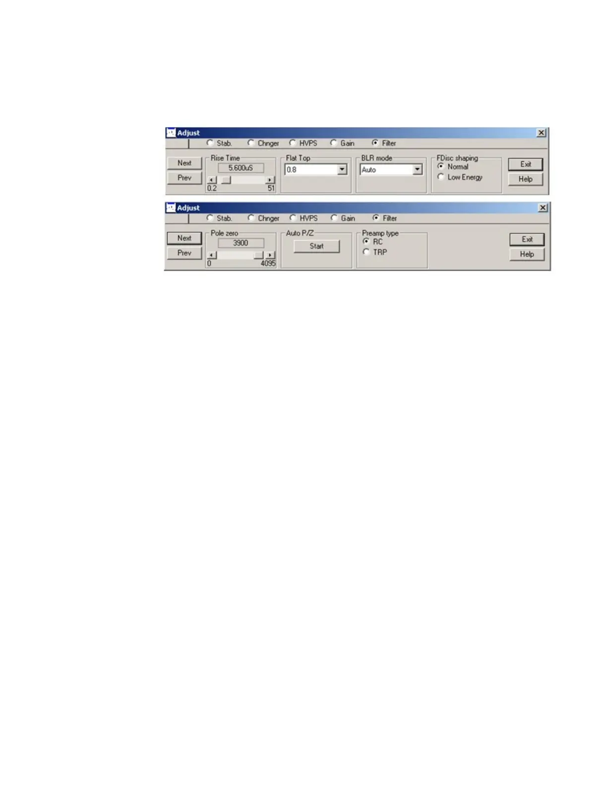 to 100 ns. In Low Energy the Fast Discriminator filter rise time is set proportional to