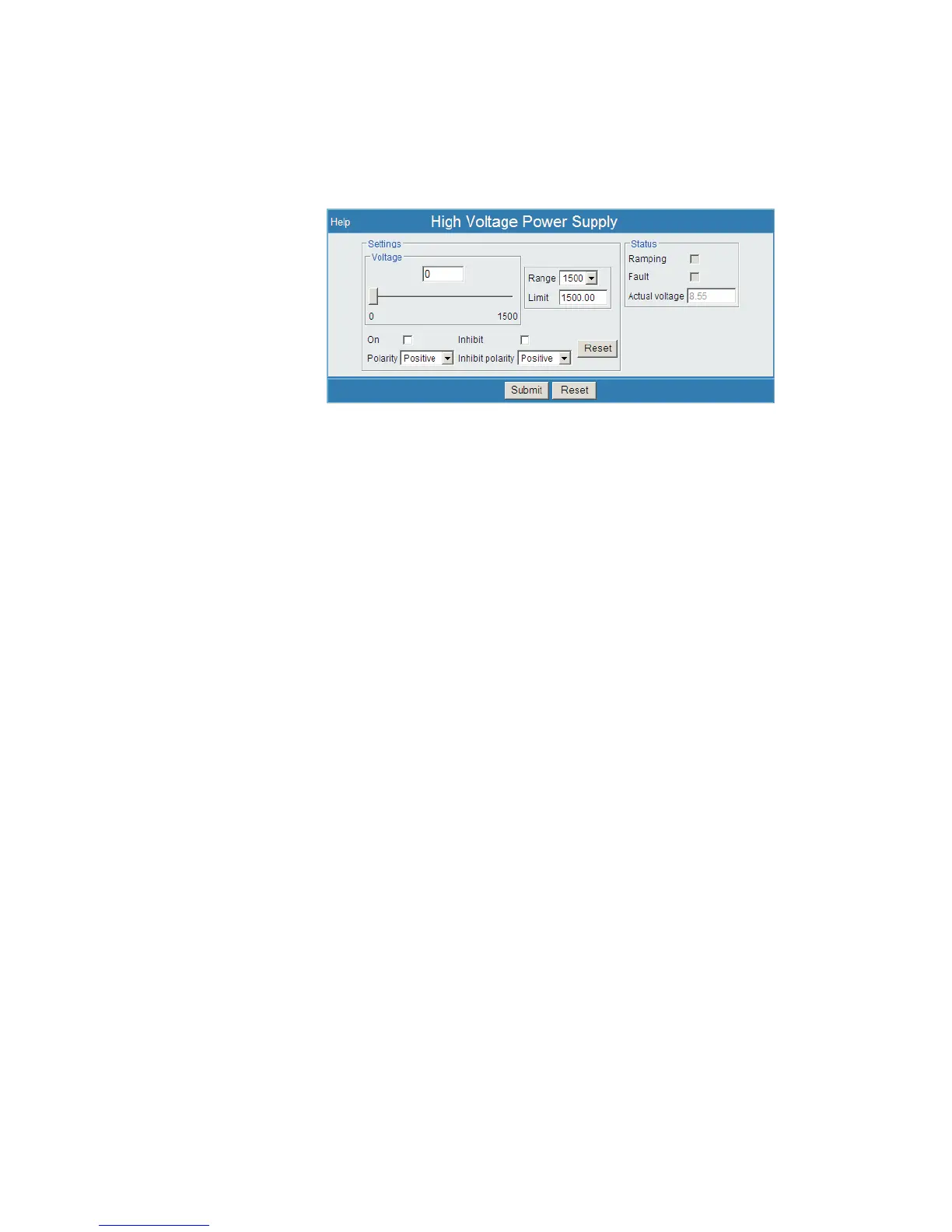 Note The High Voltage Power Supply webpage is unique as it has two regions that
