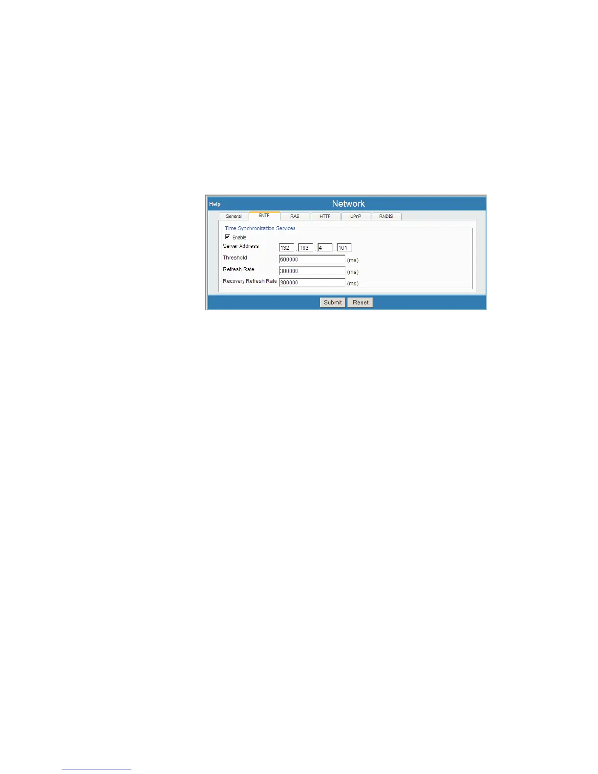 Select Network, then select the SNTP tab. You will see the following options: