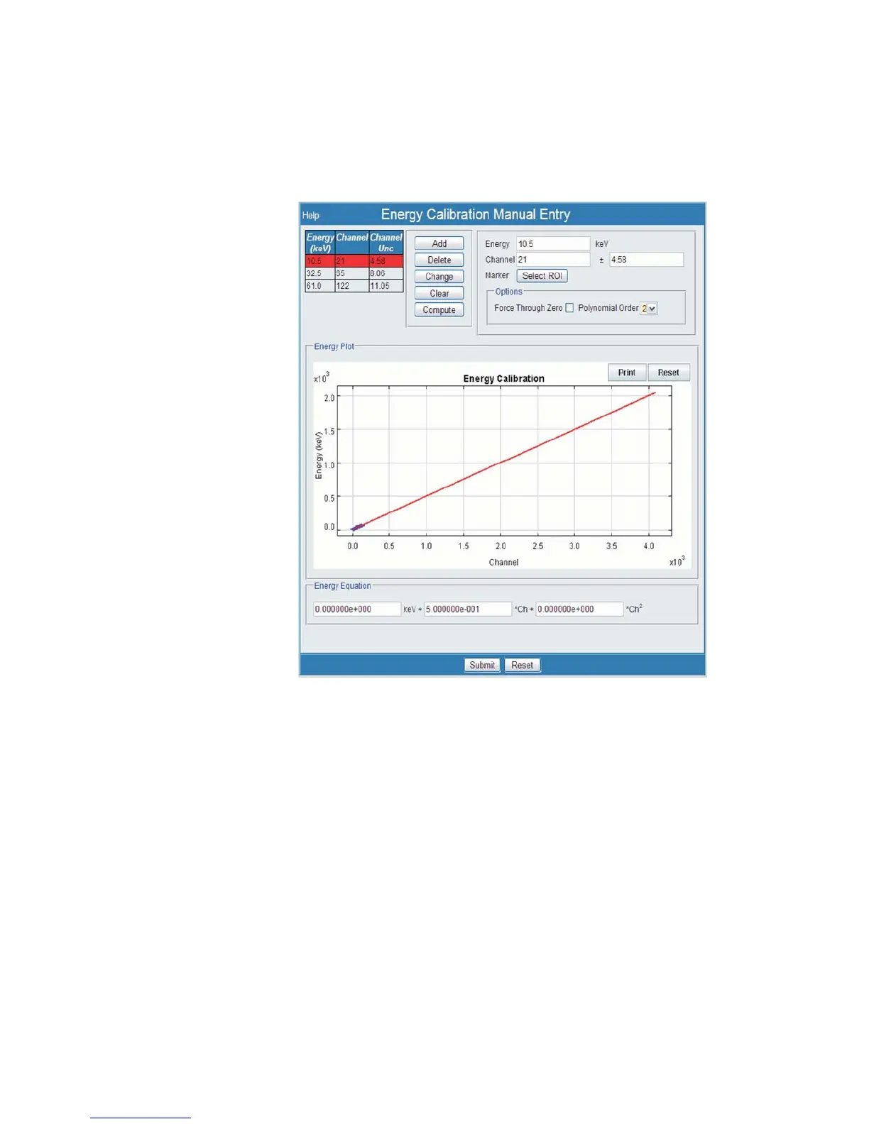 Entry page. This calibration feature displays the energy calibration in a plot.