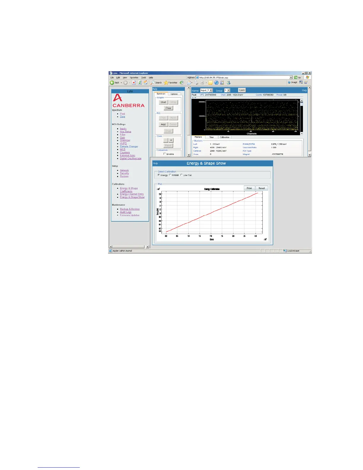 You can select the calibration to view by choosing the radio button for Energy,