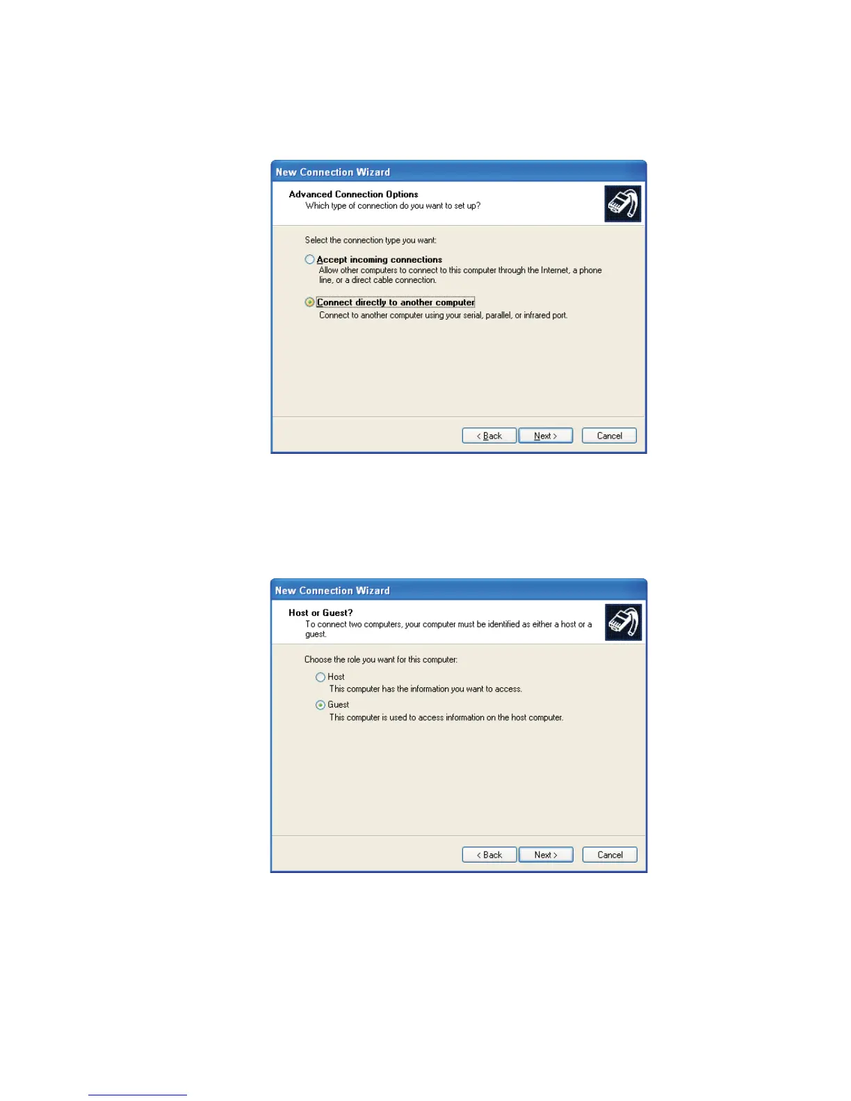 In the next screen (Figure 116), select Connect Directly to Another