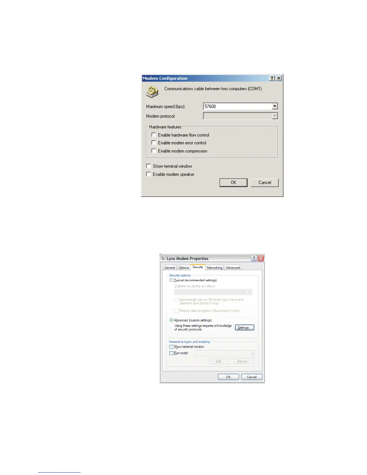 Figure 138 - Security Settings tab on Modem Properties