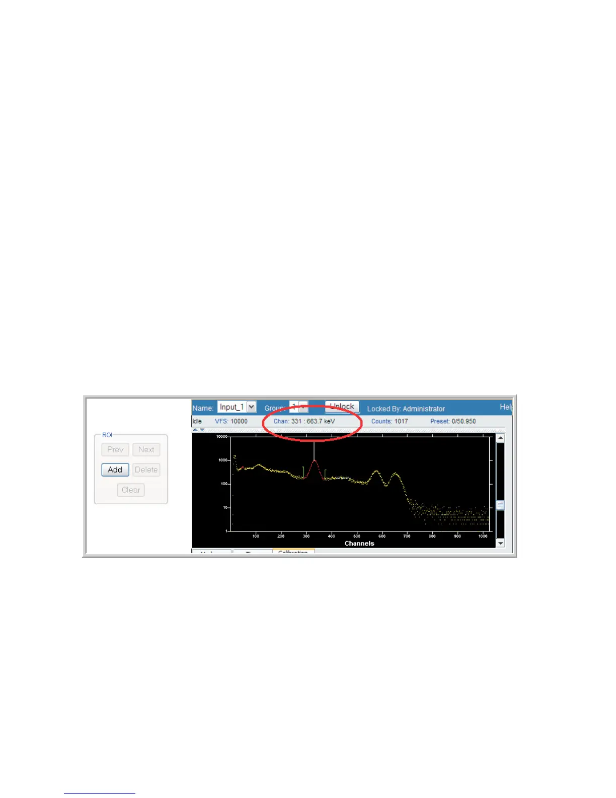 Figure 6 and look for the Chan: field, which in this example shows 663.7 keV.