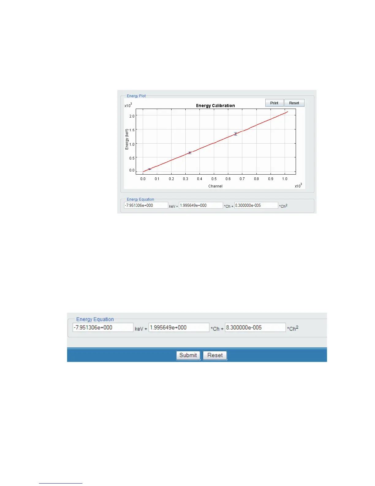 Select the Compute button to calculate the Energy calibration and