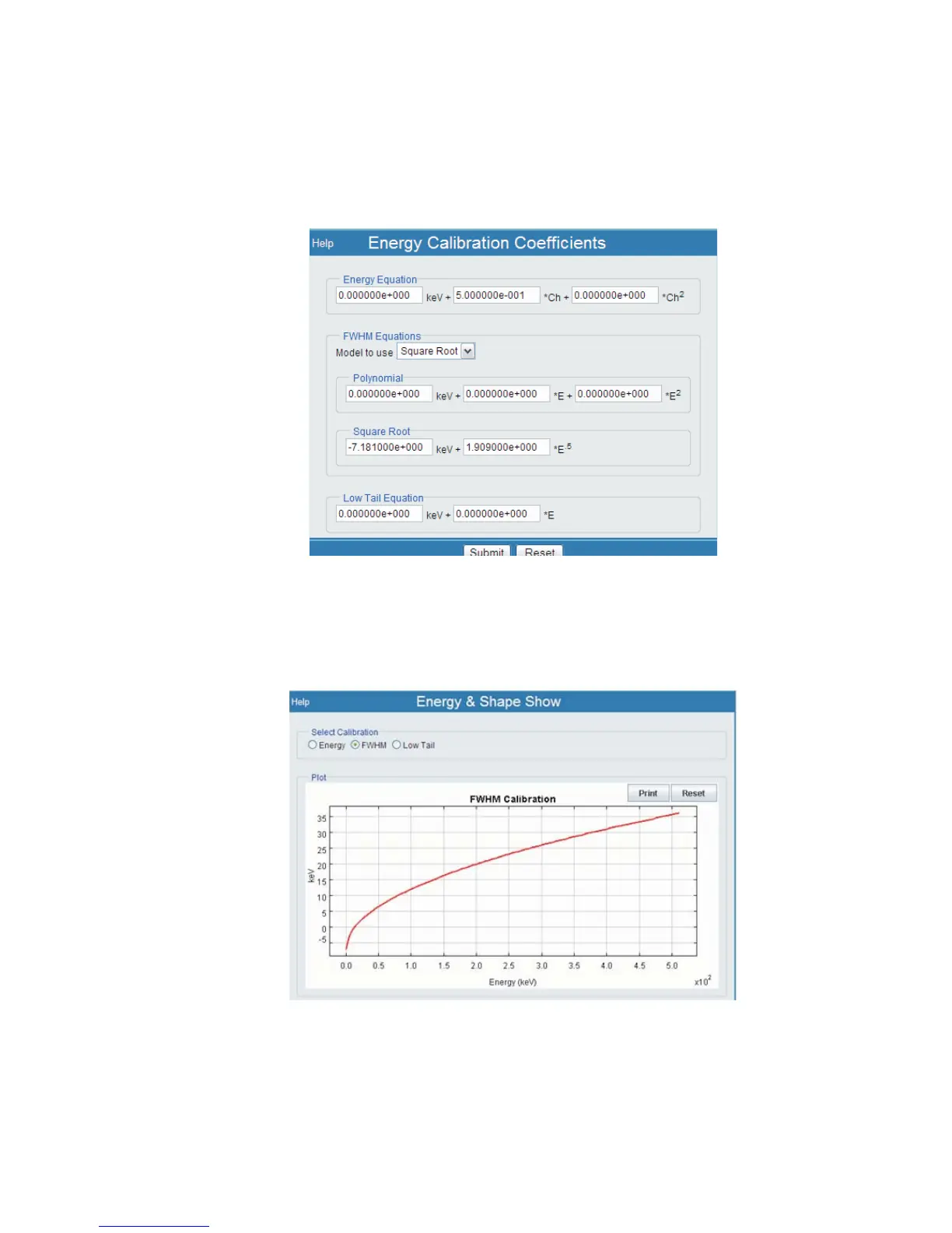 FWHM parameters must be entered manually, on the Energy Calibration