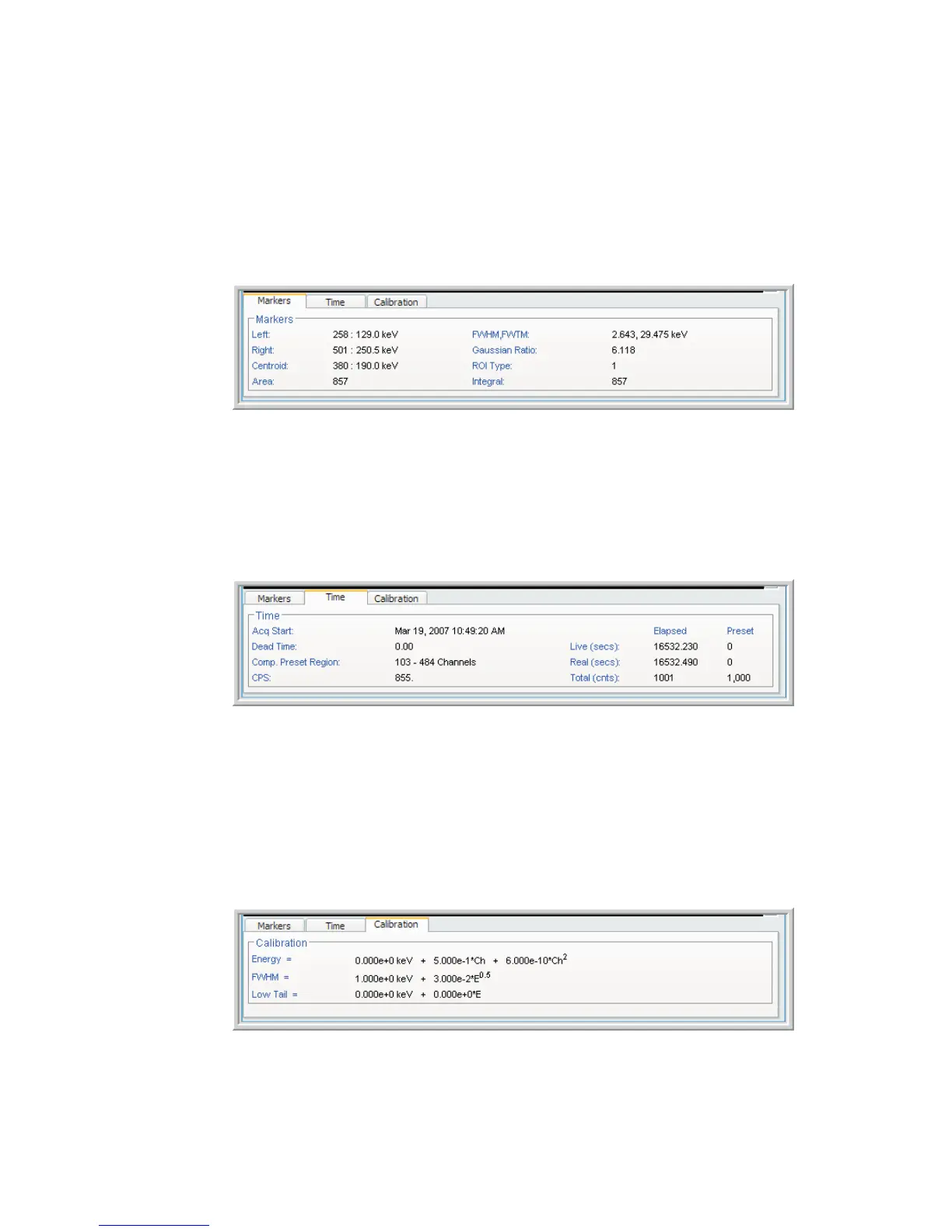 The calibration tab provides information about the current energy and shape calibra