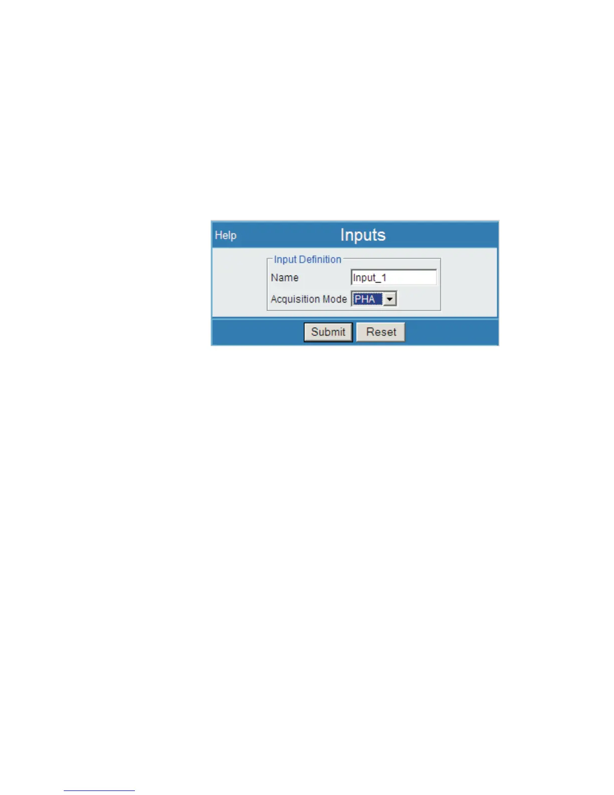 Default settings have Input_1 as a PHA input, and its options include any type except