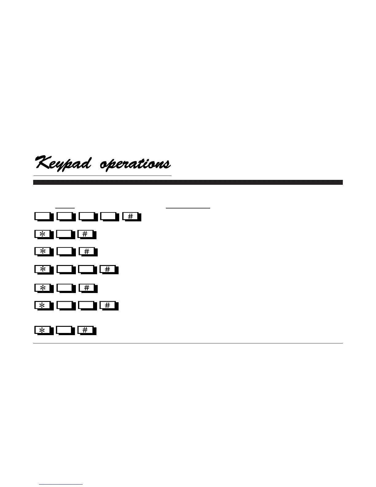 For your convenience, the following is a list of the keypad operations discussed in these instructions.