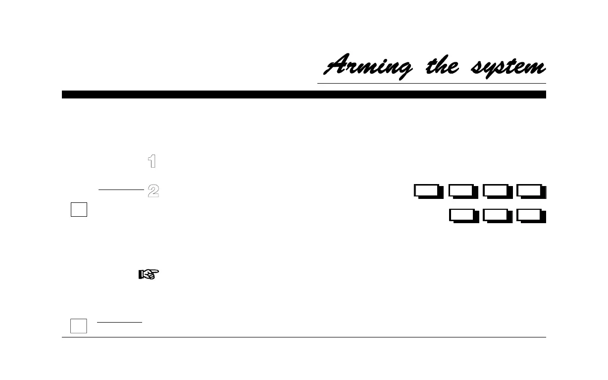 The keypad will beep twice to confirm that the system is armed,