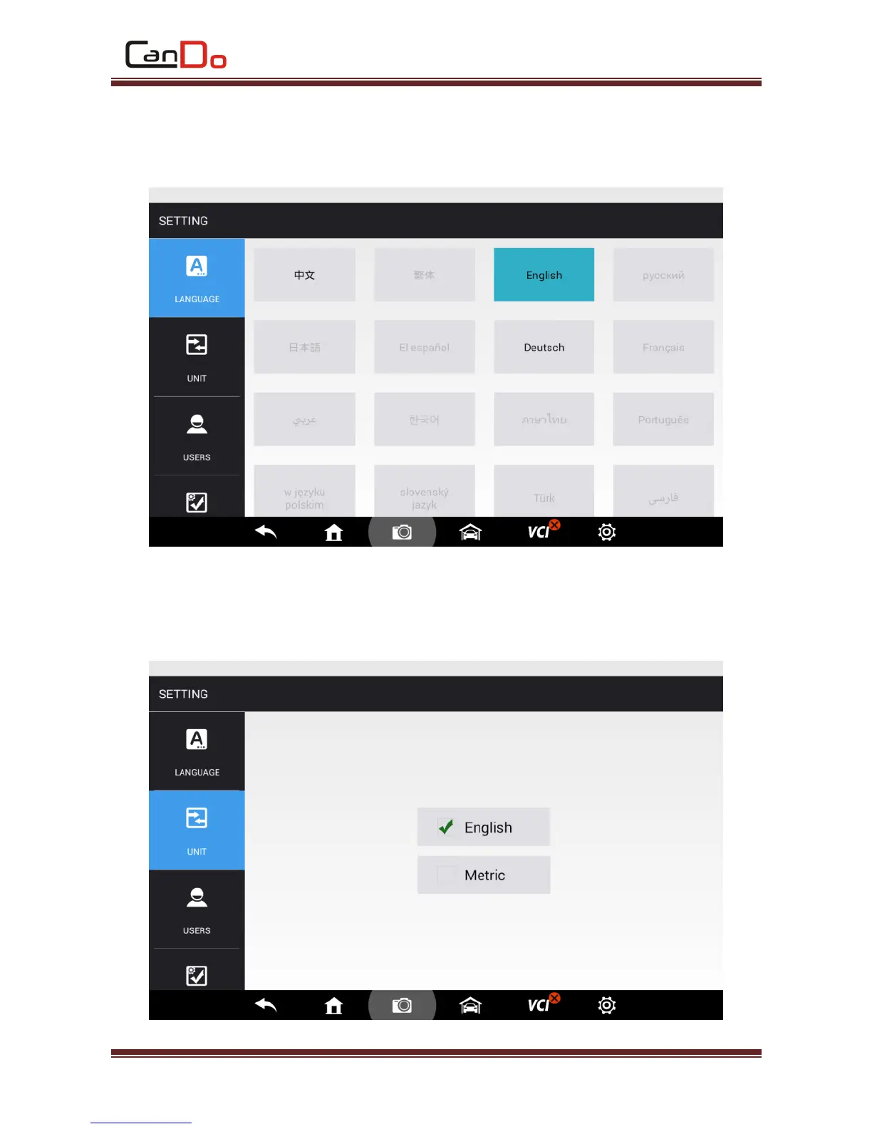 Set the live data unit in the diagnostic software. You can select Metric or English