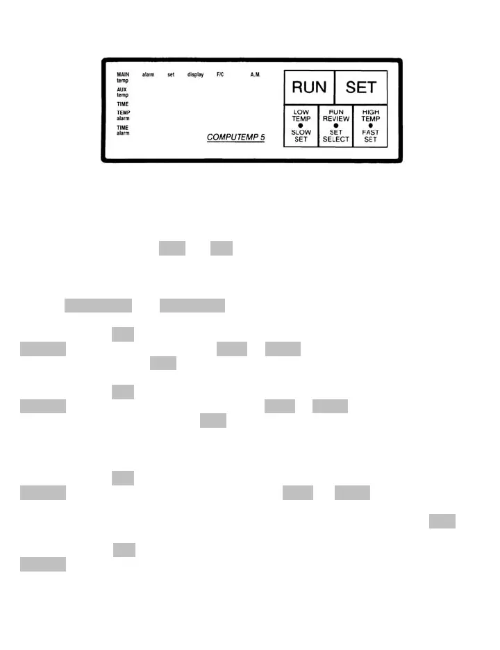 when temperature equals your alarm setting. Return to RUN MODE by pressing RUN.