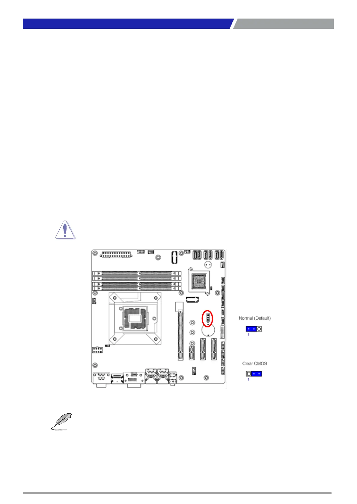 memory of date, time, and system setup parameters by erasing the CMOS RTC RAM data. The onboard