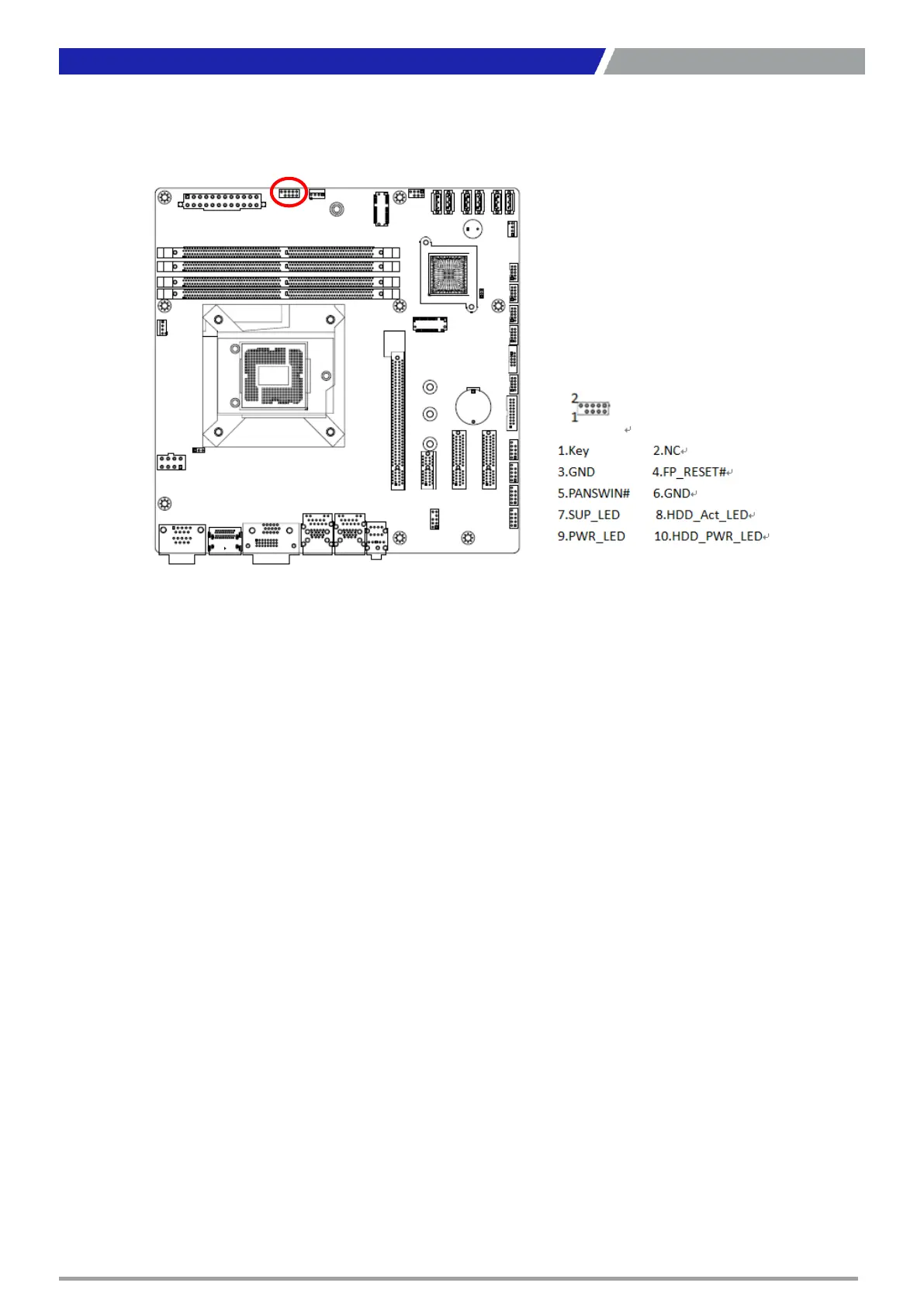 This 2-pin connector is for the chassis-mounted reset button for system reboot without turning off