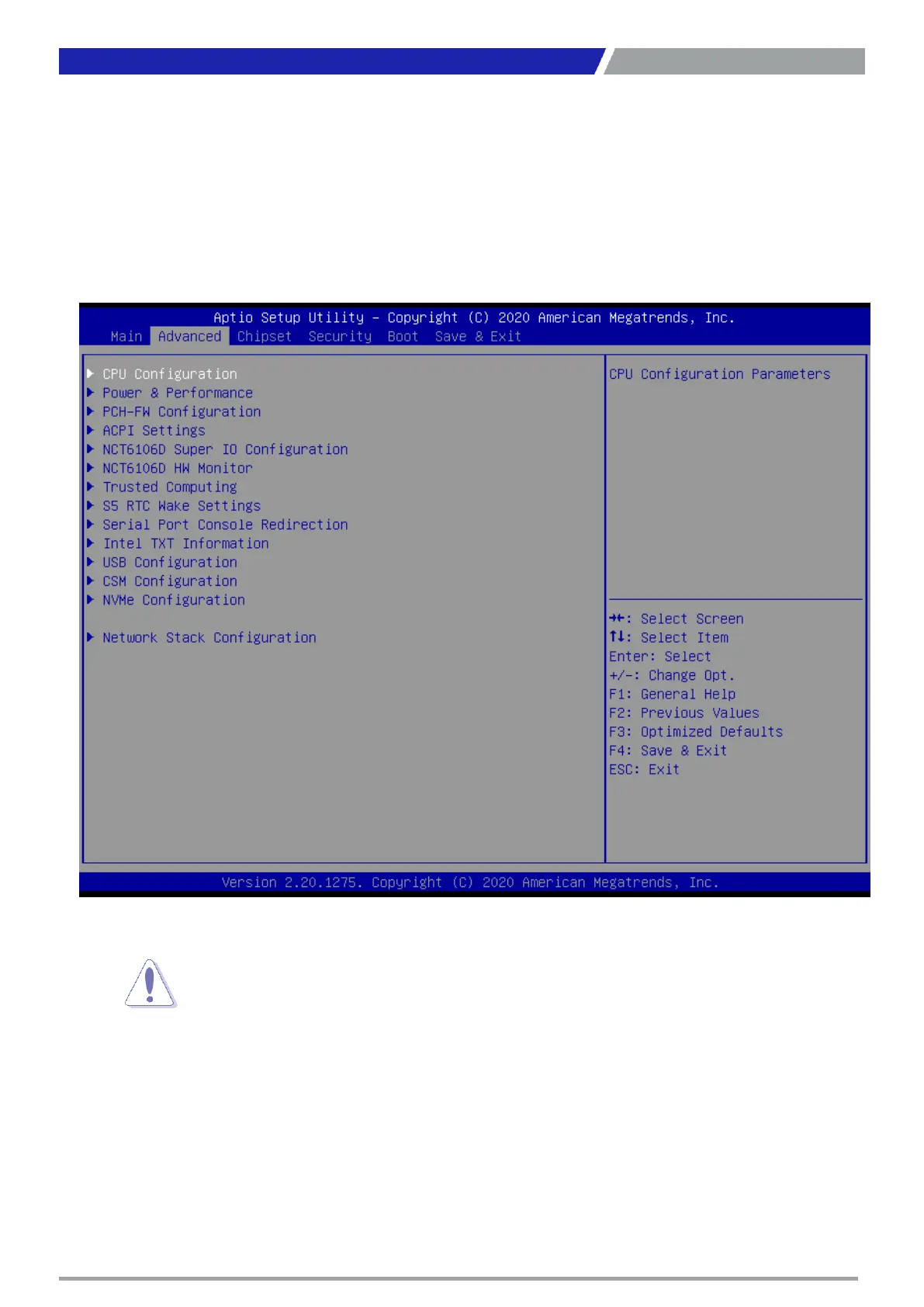 <Arrow> keys. All Advanced BIOS Setup options are described in this section. The Advanced BIOS Setup