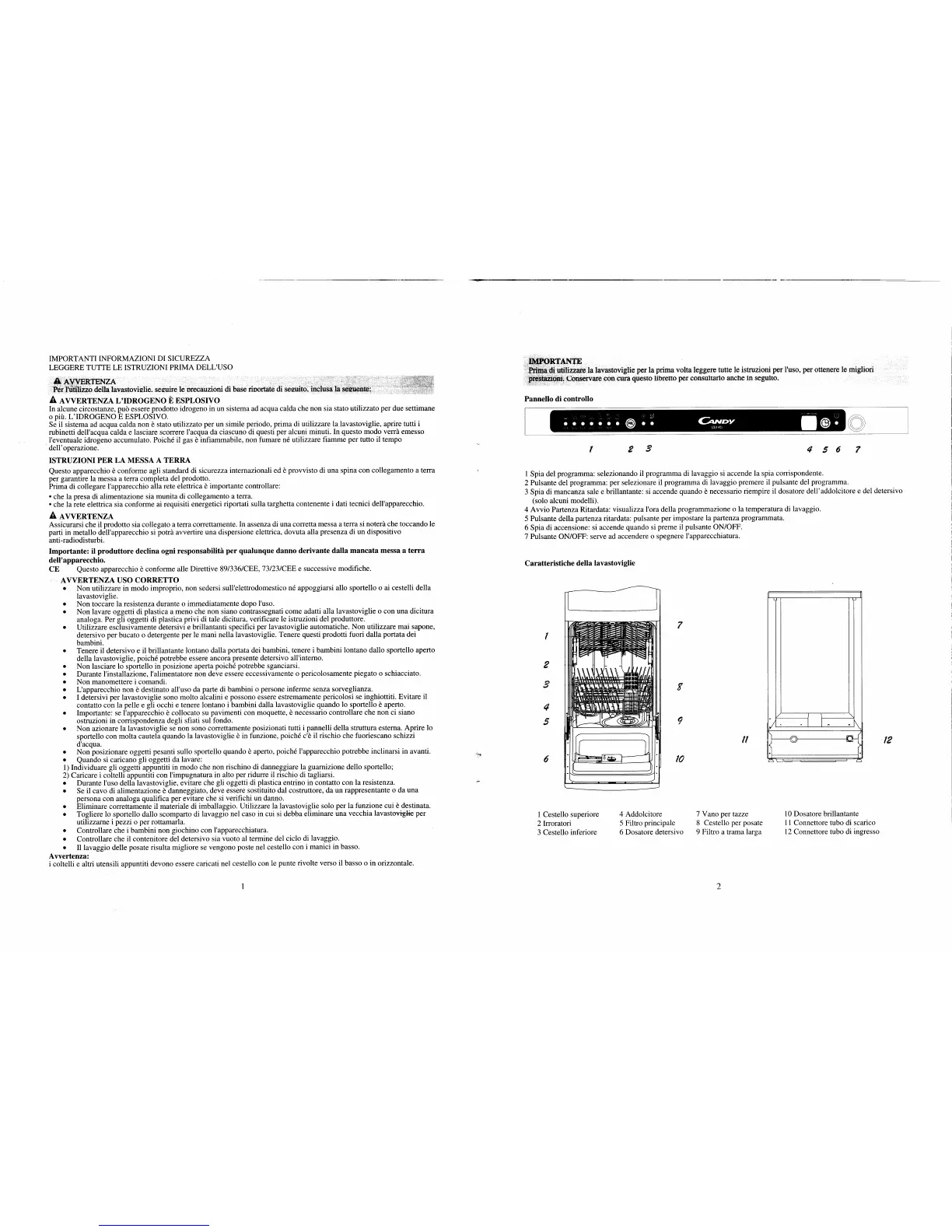 Candy 32900048 CDI45 - Hydrogen Hazard Warning; Control Panel Overview; Dishwasher Features